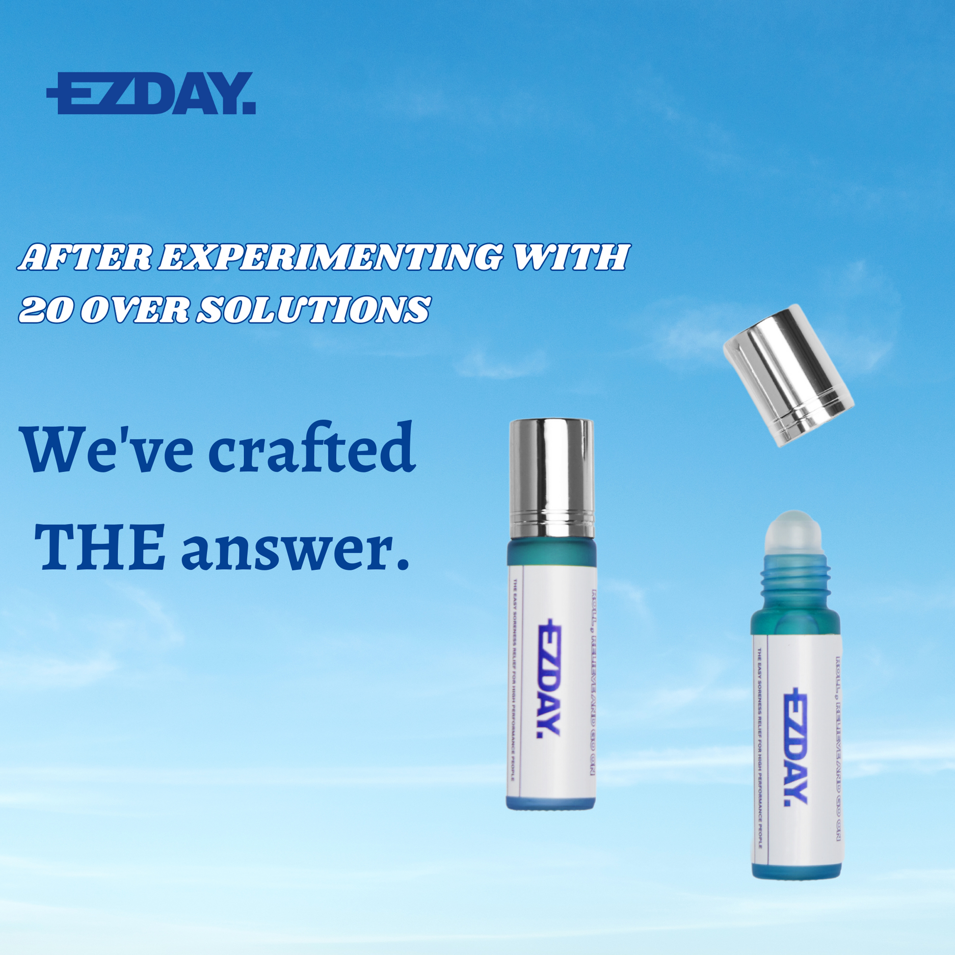 Introducing our EZDAY Roll-On, with the blend aroma, preparing you to return to work with a fresh focus. Experience the ease of application with the silky smooth roll-on ball for quick relief on the go. This formula is designed for instant relief on the go. a quick and convenient solution to tackle muscle burden and regain your peak performance.